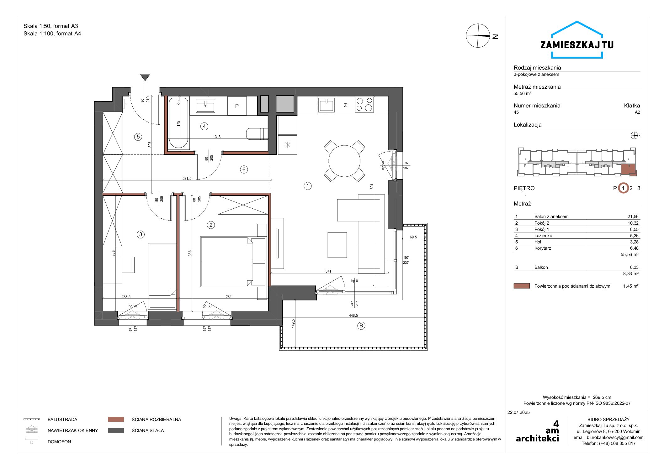 Metraż mieszkania55,56 m2