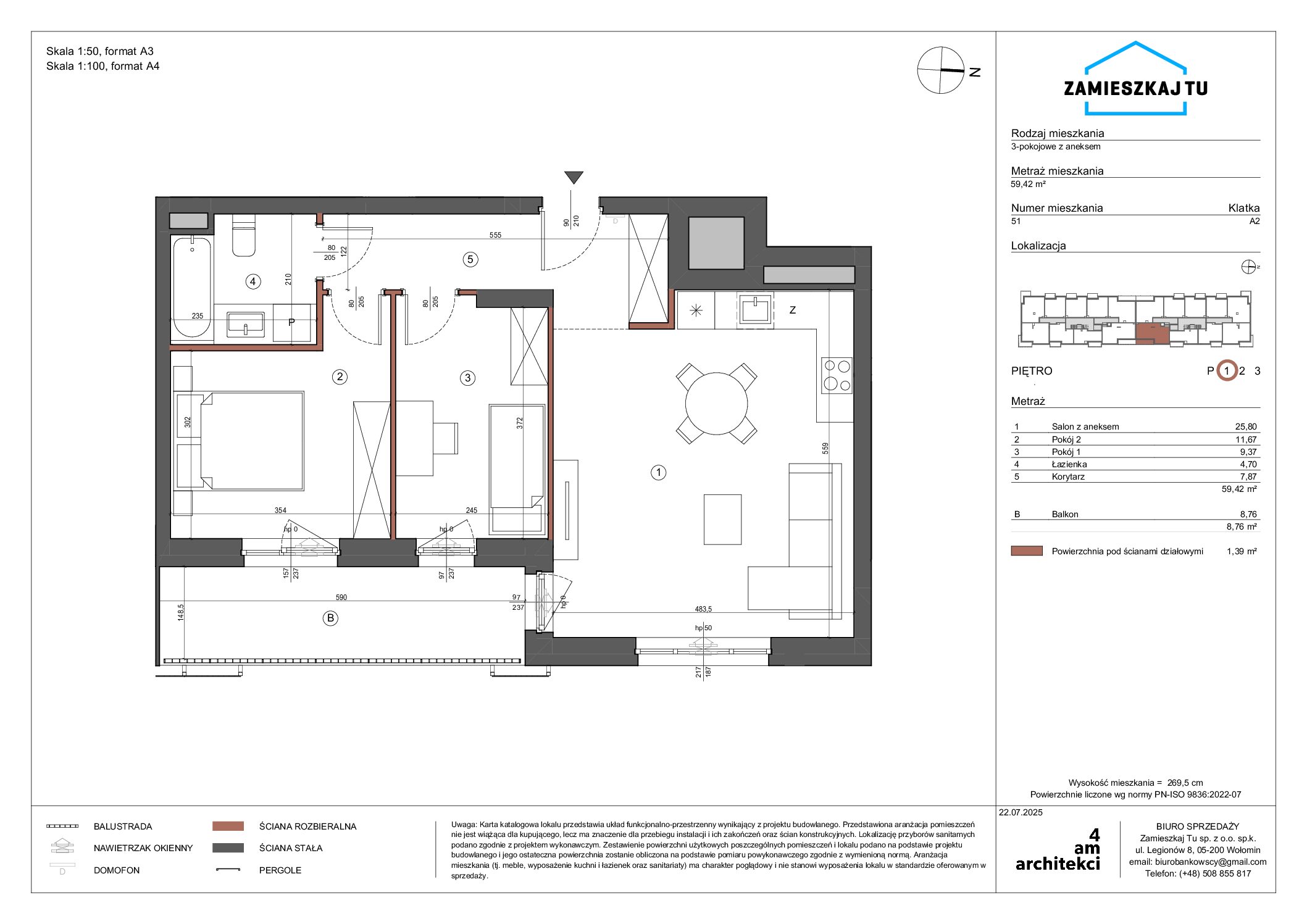 Metraż mieszkania59,42 m2