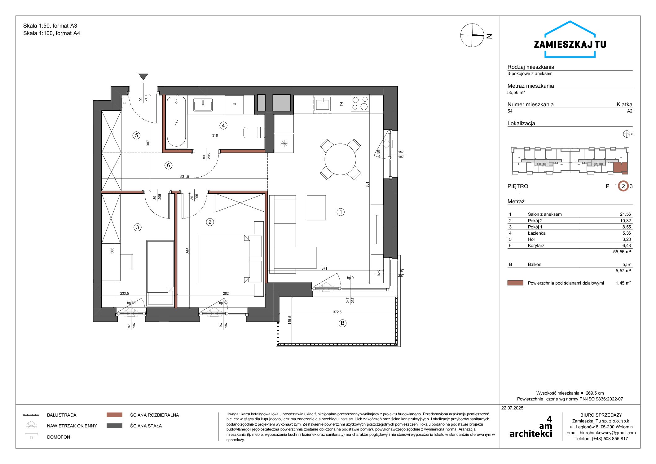 Metraż mieszkania55,56 m2